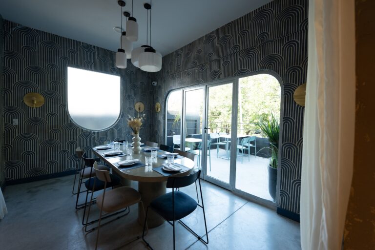 El local tiene dos plantas; dentro de la del primer piso hay un pequeño salón privado y una terraza que mira al boulevard.