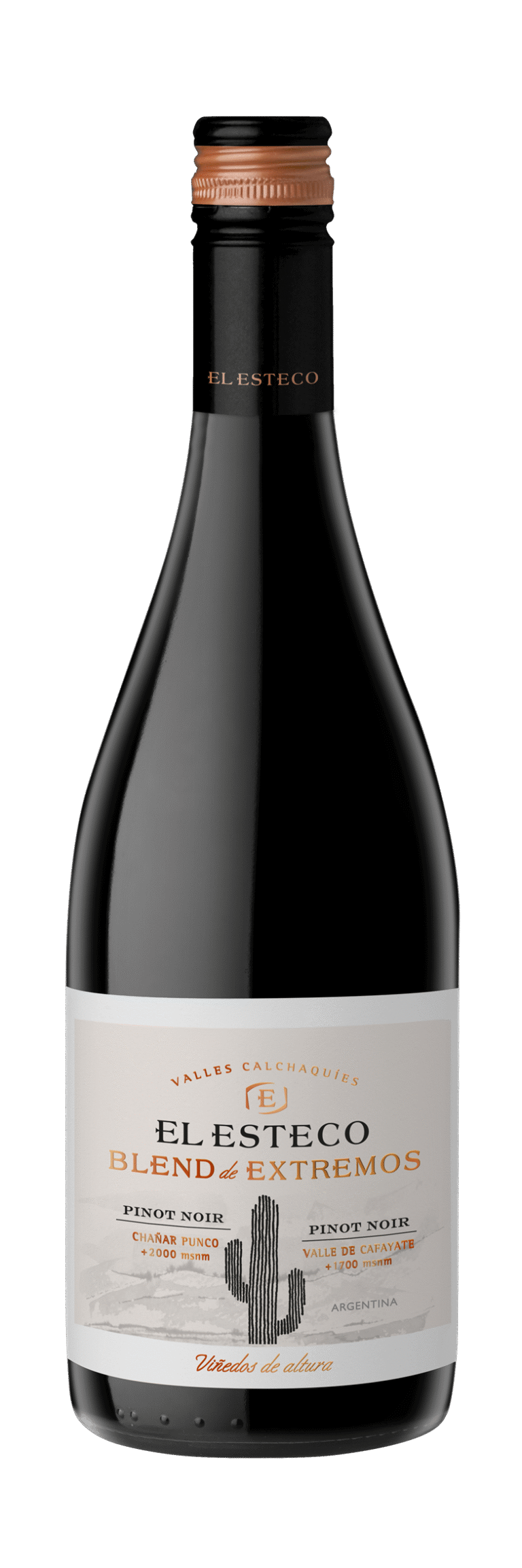 El Esteco Blend de Extremos Pinot Noir Pinot Noir se cuenta dentro de los Pinots fáciles de beber, ideales para consumir jóvenes. Tiene un corazón de fruta roja fresca, acompañado de alguna nota especiada, taninos suaves y paso ligero en boca. Muy versátil para el maridaje, funciona prácticamente con todo. Fundamental servirlo fresco.