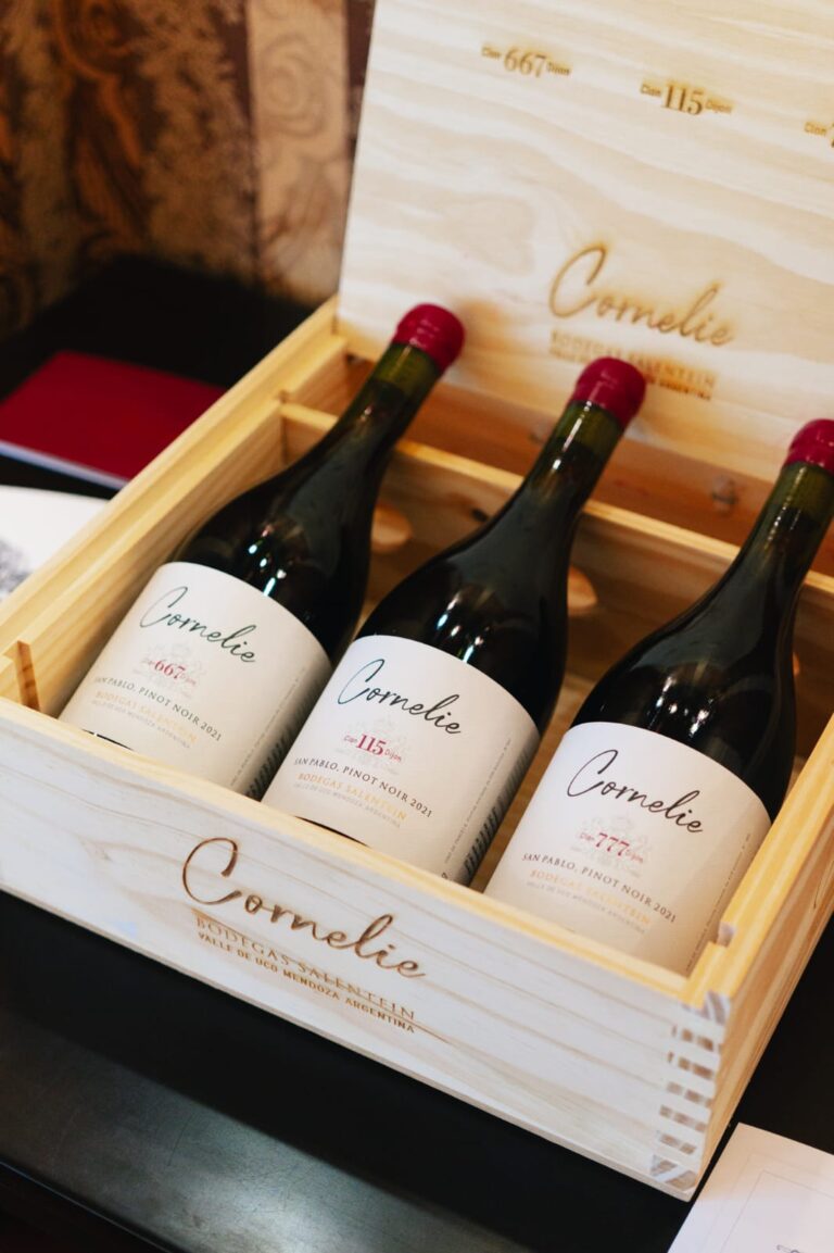 Cornelie 2022 (Bodegas Salentein): esta trilogía de Pinot Noir, cuyos tres exponentes vienen en caja de madera, muestra cómo se expresan tres diferentes clones de esta variedad tinta en uno de los mejores terroirs mendocinos. Aunque probar por separado los vinos es una posibilidad, la comparación de los tres cuenta mucho acerca de Pinot Noir ($450.000)